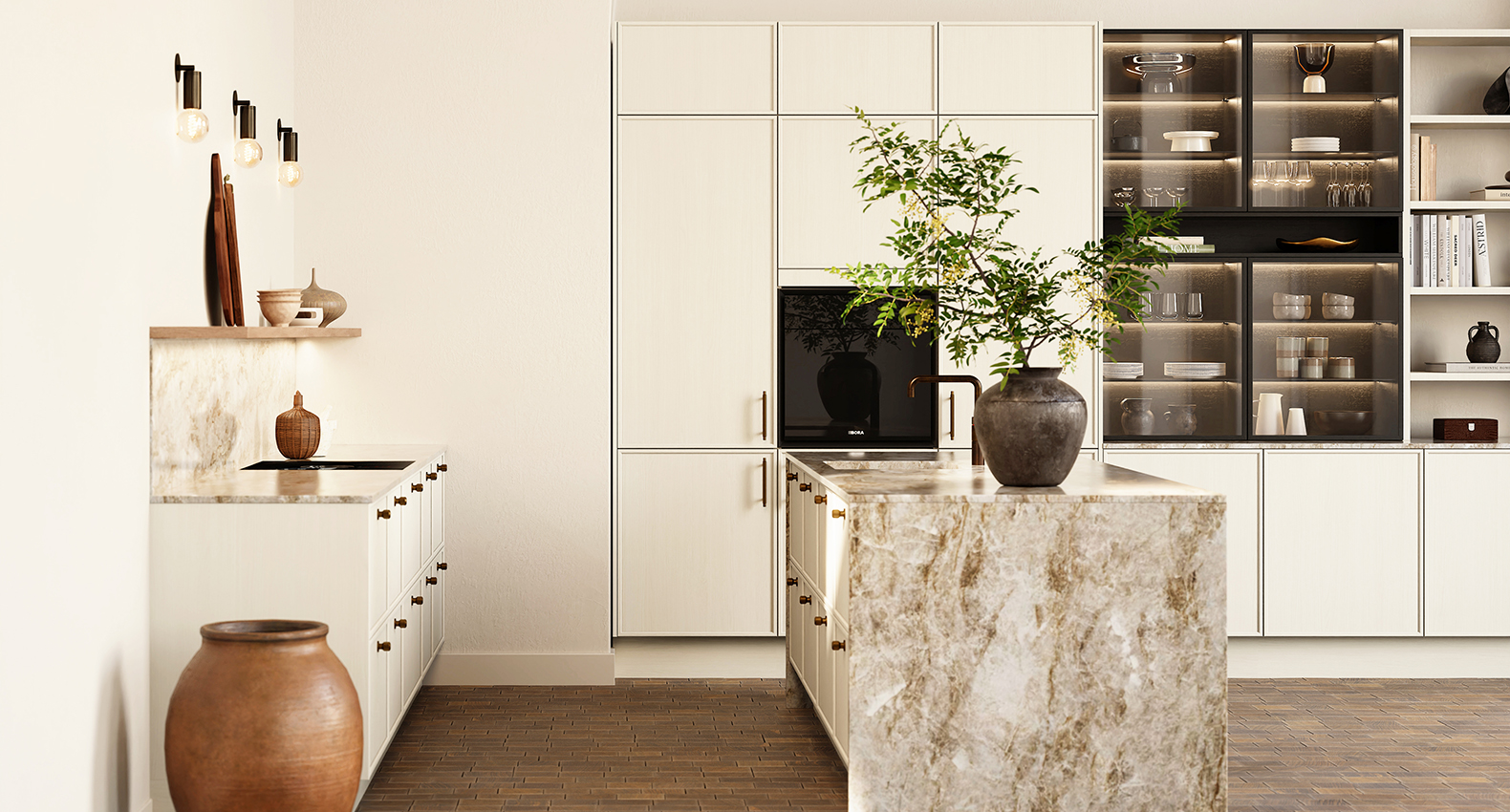 Med sine naturlige materialer, rene linjer og taktile struktur er Ramos stilige rammedesign uten overflødige kruseduller. Til gjengjeld får du vakker estetikk i kompromissløs kvalitet, bygget på flere tiår med tradisjoner. Ramo er kjærlighet ved første håndslag og det perfekte kirsebæret på toppen av kjøkkendrømmen din.